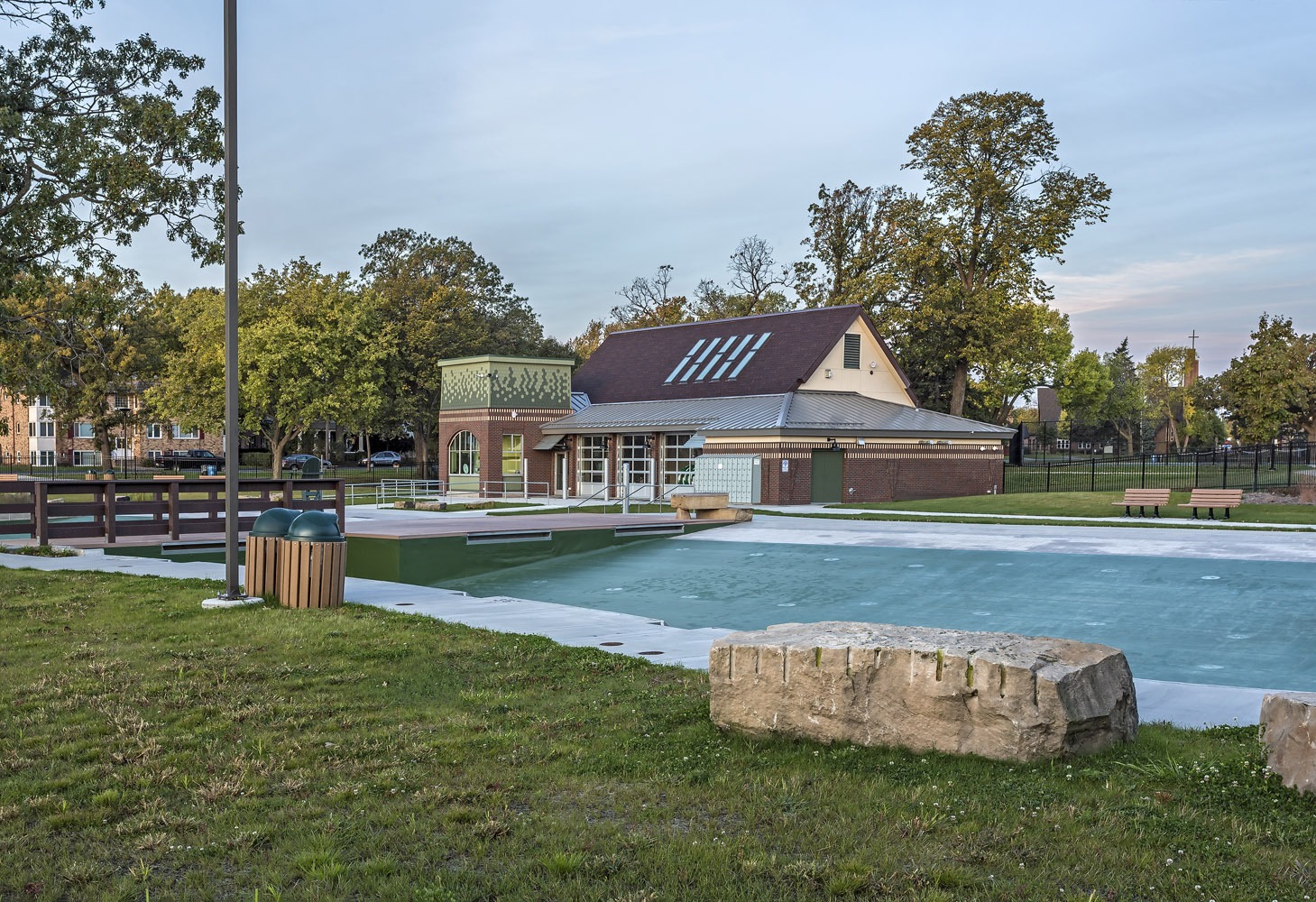 CDG assisted with the planning phase of the project, which included options to add new site features in various locations throughout the 22 acre park. One improvement was a new aquatic facility and pool—the first natural swimming pond in the United States—that includes a constructed wetland treatment system rather than a typical chlorine treatment system. CDG provided structural engineering for the pool and designed the new accompanying facility. The four-season building houses restrooms, lockers, and storage in the summer and serves as a warming house during the winter. The building provides a welcoming new aesthetic to the historic park, serving as a visible sign of the park’s renewal, as well as a controlled point of access for pool visitors.